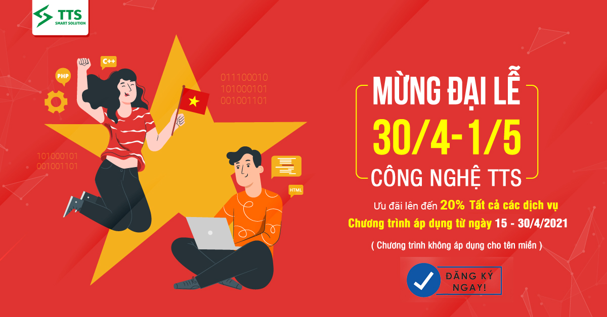 Tưng bừng mừng đại lễ 30/4 – 01/05, Công Nghệ TTS xin giới thiệu chương trình khuyến mại giá cực sốc cho Website, Hosting, SEO, Quảng cáo ADS, Email Server.
