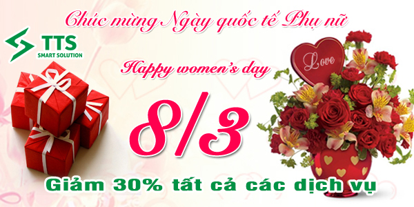 Công ty Công Nghệ TTS- Chuyên thiết kế website theo yêu cầu - xin gửi đến một nửa thế giới lời chúc sức khỏe, hạnh phúc và thành đạt nhân ngày 8/3. Chương trình khuyến mãi áp dụng tới ngày: 16/03/2019